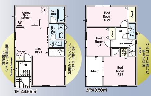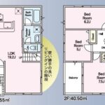 | 設備・条件 | トイレ2ヶ所、温水洗浄便座、バス・トイレ別、浴室乾燥機、洗面所、IHクッキングヒーター、全居室収納、床暖房、複層ガラス、モニター付インターホン |