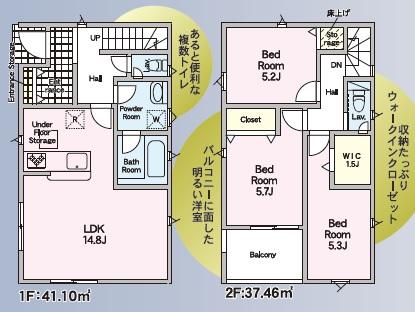 改正省エネ基準適合住宅 省令準耐火対応 JAS規格集成材 建物保証20年(住宅瑕疵保険10年+延長保証10年) 地盤保証20年 住宅設備延長保証10年 メンテナンス保証サービス2年 住宅トラブル応急対応サポート5年 オール電化住宅仕様 アルミ樹脂複合サッシ LOW-Eペアガラス 食器洗浄乾燥機 IHクッキングヒーター 浴室暖房乾燥機 玄関収納 シャワートイレ