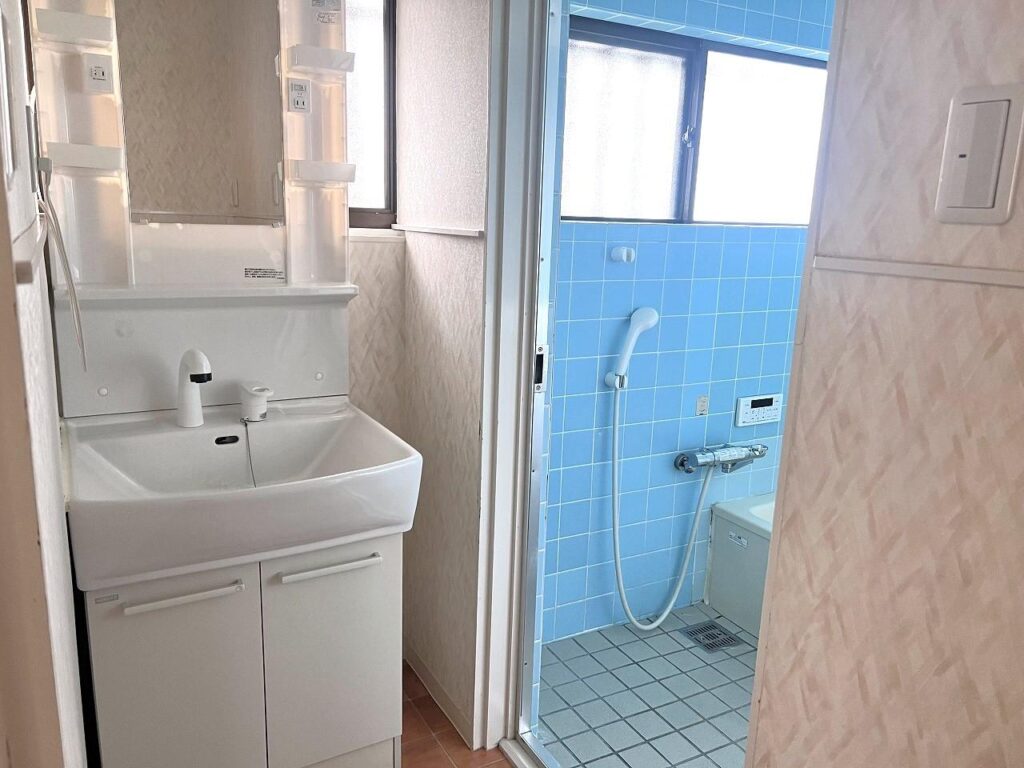 | 設備・条件 | 温水洗浄便座、バス・トイレ別、追焚機能、オートバス、シャワー、浴室に窓、浴室1坪以上、洗面所、洗面台、システムキッチン、2口コンロ、グリル、床下収納、全居室収納、クローゼット、洗濯機置場、室内洗濯機置場、フローリング、照明器具、モニター付インターホン、プロパンガス、電気、上水道、浄化槽、側溝